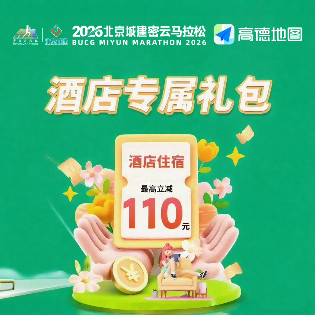 赛前安心休憩,方能全力冲刺!凡在高德地图平台完成2026北京城建密云马拉松报名的选手,均可领取密云本地酒店专属优惠券礼包,最高立减110元礼包将按照选手报名顺序依次发放,先报先得!享优质住宿助力大家以饱满状态备战密马。