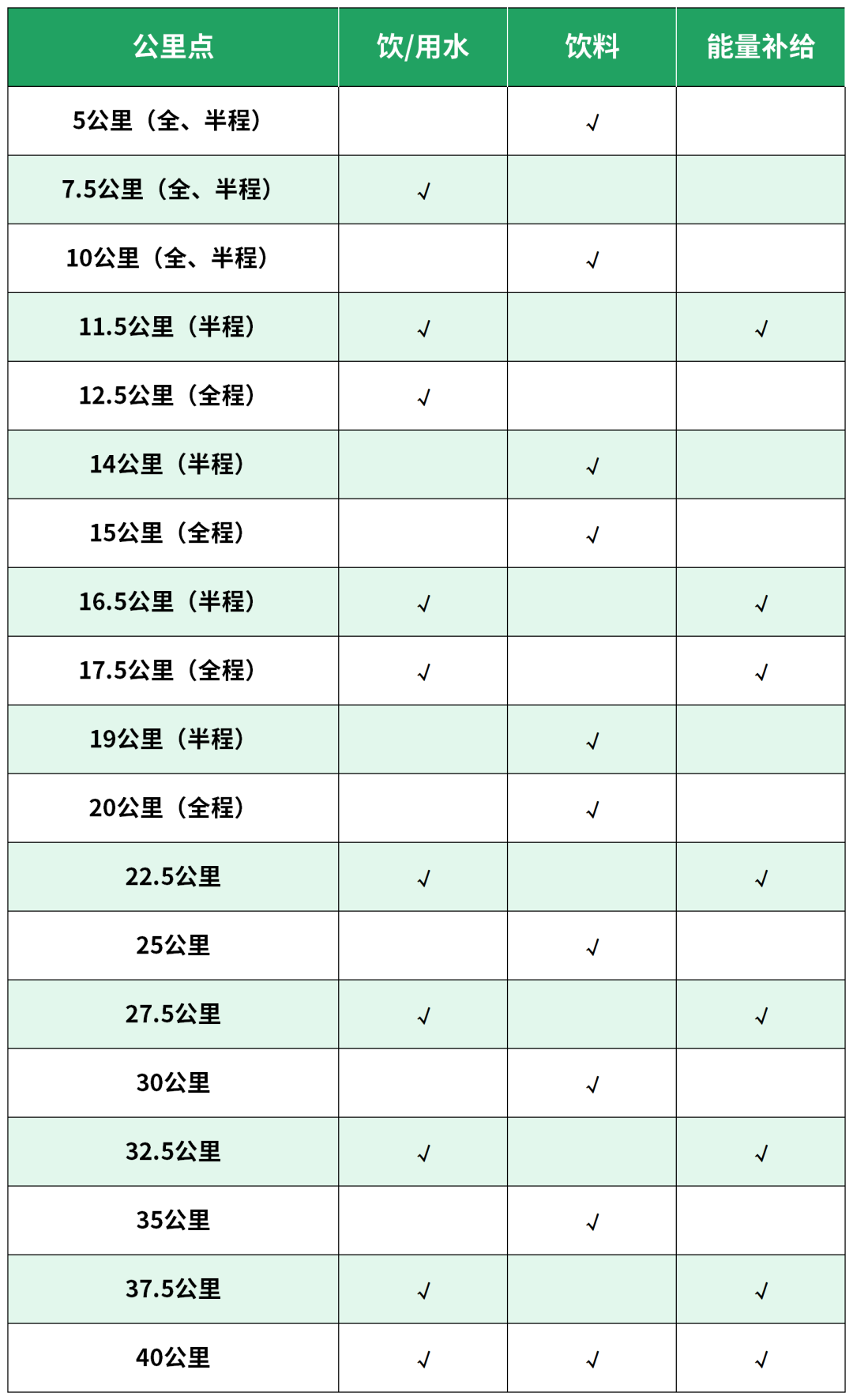 说明:以上饮水/用水、饮料、能量补给仅供参考,以现场实际设置为准。除以上设置外,组委会将根据天气情况设置喷淋设备。